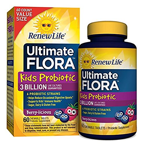 Keep your child's tummy in tip-top spirits every day with Ultimate Flora Kids Probiotic 3 Billion. This daily chewable probiotic is made with 6 scientifically studied Lactobacillusand Bifidobacterium strains to ease occasional tummy trouble and support digestive and immune health. Each tablet is bursting with delicious Berry-licious taste, and is naturally sweetened with tooth-friendly xylitol with no artificial sweeteners, flavors, or colors. These statements have not been evaluated by the Food and Drug Administration. This product is not intended to diagnose, treat, cure, or prevent any disease. * These statements have not been evaluated by the Food and Drug Administration. This product is not intended to diagnose, treat, cure, or prevent any disease.Feature