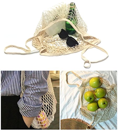 2 Pack Washable Cotton Mesh String Organic Organizer Shopping Handbag, Long Handle Net Tote