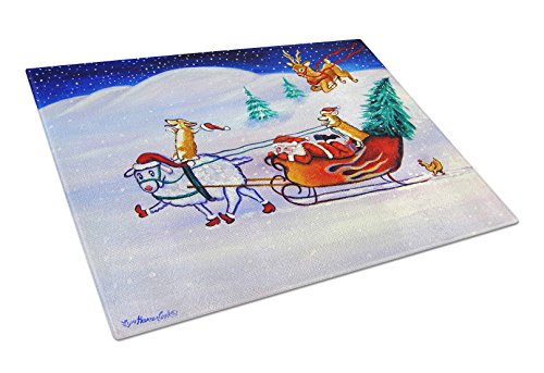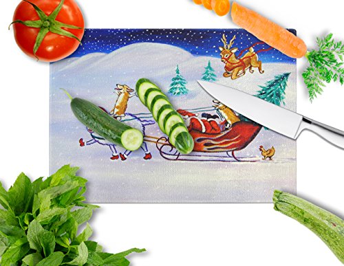 Caroline's Treasures 7442LCB "Corgi High hacked Santa Claus Sleigh" Glass Cutting Board, Large, Multicolor