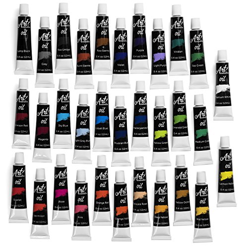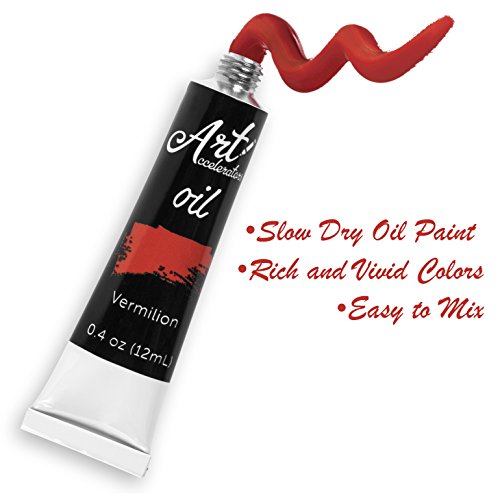 - ★ A COMPLETE AND COLORFUL PALETTE: Art Accelerators has created a complete oil painting kit and it includes 32 uniquely bright and vivid colors. The oil paint will dry slowly, so you’ll have as much time as you need to work on your creative piece of art. And once you will have completed your painting, the colors will remain lively and vivid even after the oil paint dries. Each tube contains 12ml of paint. Try all 32 oil colors out and see for yourself!