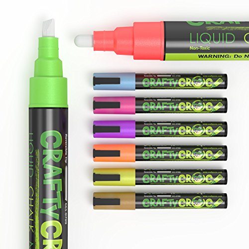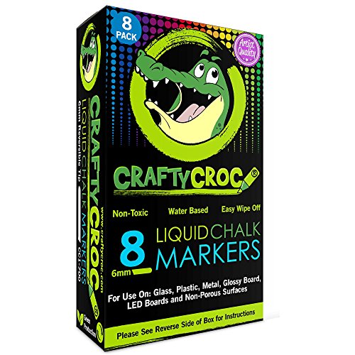 Crafty Croc Liquid Chalk Markers, 8 Pack Bright Neon Colored Paint Pens with Reversible Nib on Each Pen