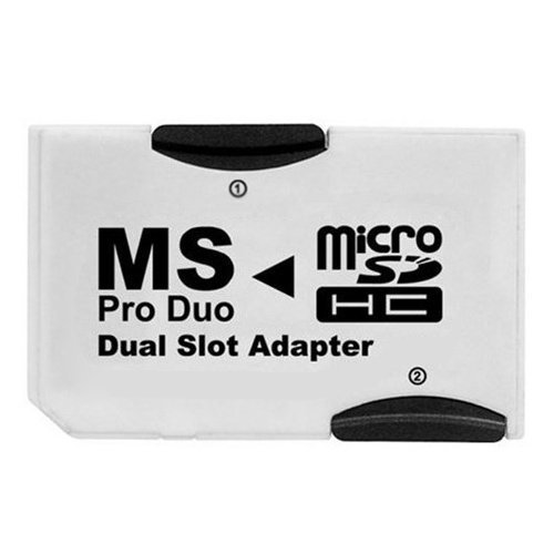 MS PRO DUO Adapter. Converts Two MicroSD or MicroSDHC Cards To MS PRO DUO. Compatible with PSP. Support up to 32GB