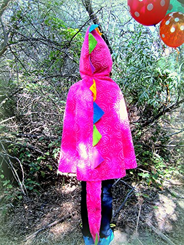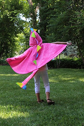 -. Binding : Toy -. Brand : Storybook Wishes -. Color : Pink -. Department : girls -. EAN : 0792125453198 -. Feature : Includes hot pink dragon cloak with Tail / Perfect for play time, stage time or school dress up days / One size fits most ages 3-8 / Fun for a Halloween costume, theme party favor, and plays / Enjoy this costume year round for knight and medieval dress up -. IsAdultProduct : 0 -. Label : Storybook Wishes -. Manufacturer : Storybook Wishes -. ProductGroup : Toy -. ProductTypeName : TOYS_AND_GAMES -. Publisher : Storybook Wishes -. Studio : Storybook Wishes -. Title : Hot Pink Dragon Cloak with Tail -. UPC : 792125453198