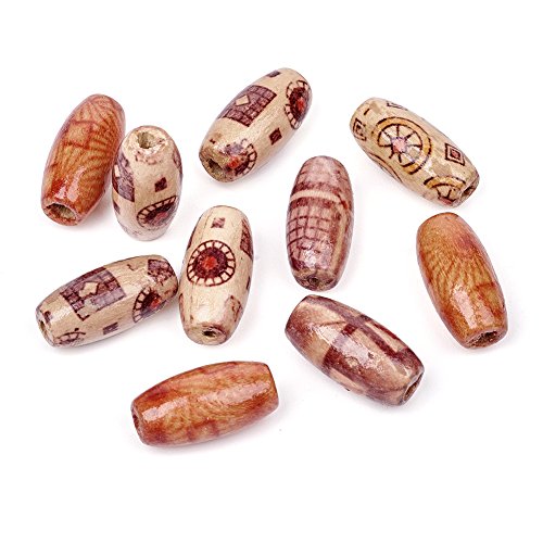 - Printed Wood Beads, Oval Rice Shape, Mixed Color