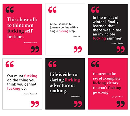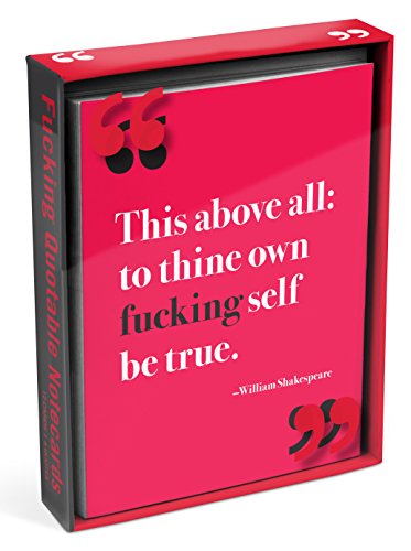 Studio : Knock Knock (Office Products) Publisher : Knock Knock (Office Products) Binding : Office Product Product Description We’ve taken the wickedly irreverent content from This Is a F*cking Quote Book and turned it into notecards for almost any f*cking occasion. Appealing to anyone with a sense of humor (or a potty mouth), this card collection of (slightly) edited famous quotations goes where other cards totally f*cking don’t. Make folks chortle with Knock Knock stationery! Trying to keep it clean? Send Like, Totally notecards instead! 4.75 x 6 x 1.25-Inches; 12 cards and envelopes (2 each of 6 designs). Knock Knock is an independent maker of clever gifts, books, and whatever else they can think up. Knock Knock's mission is to bring humor, creativity, and smarts to everyday life. Say something more with #knockknockstuff. 0