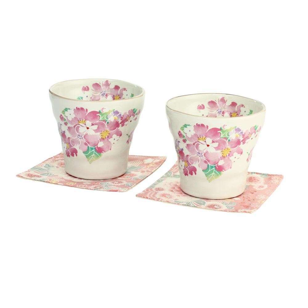 春を彩る桜を鮮やかに描いています。ロックカップとコースターがセットになったペアギフトです。 |