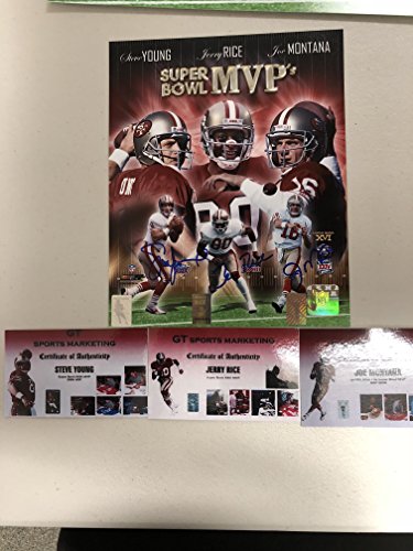 Jerry Rice Joe Montana Steve Young Triple Autographed Signed San Francisco 49ers Super Bowl MVPS 8x10 Photo GTSM Holograms and COA Cards