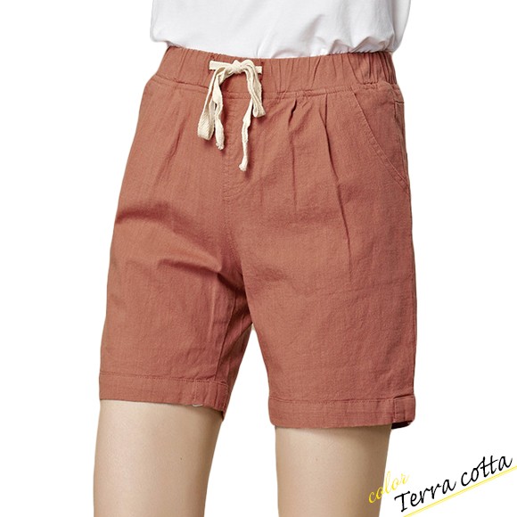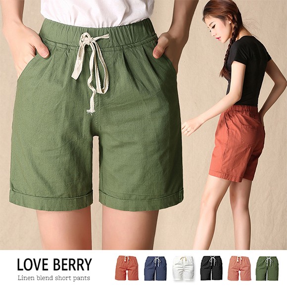 ウエストがゴムで、さらに紐で調節できます。麻混素材でさらっと快適★