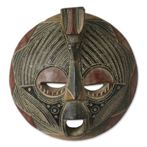 NOVICA Decorative Sese Wood and Aluminum Mask, Black, 'A Blessing'