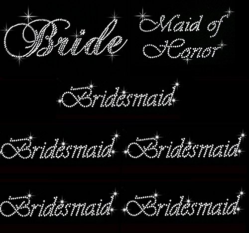 Lot of 7 Rhinestone Wedding Iron on Transfer (1 Bride) (1 Maid of Honor) (5 Bridesmaid)