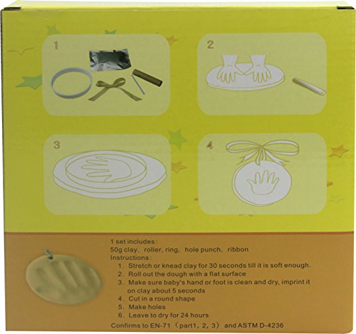 - Feature : REMEMBER ME - We know your footprints and handprints impressions must stand the test of time even when they're sometimes packed away or moved around. Our quality craftmanship measures those concerns and ensures your babys memory can be preserved with durable long lasting original casting material. You'll achieve personalized imprints with our easy to follow Do-it-Yourself instructions that never require the clay to be mixed or heated. / TWO YEARS LATER - Why wait? The general recommendation is to ask mom or dad to spread the clay and capture the new foot print or hand print sometime prior to age two. Mothers and fathers know that little infant feet and hands will one day become too big so let's get'em while they're still tiny enough to fit the mold. Better to be a baby shower gift while pregnant than an anniversary gift since early is better, but both will work just fine. / TINY AND TIDY - You don't have to worry. A little smudge here - a little clay shrinkage there. Our premium product is safe to handle, soft, pliable and non toxic. Just follow the pictured, easy to follow directions. We are so confident that your efforts will provide great results that if, for whatever reason, you don't absolutely love your new little angel hands and feet production, just return it and we will refund your FULL purchase. It's that easy and you have nothing to lose! / NO MIXING REQUIRED - TRIPLE ACTION FORMULA - Why get only ordinary hand or feet impressions from your babies when you can have a full set of accessories that allow you to prepare for those life long memories ahead of time. That's what we're offering expecting mothers! Our premium top of the line baby hand and foot print impressions, including the ability to hang them as ornaments from anyplace you'd like or display them from any desktop, shelf or table with our special stand that's just the right size. / PARENTS AGREE - Whether you're hanging your babies first Christmas ornament charm from a tree, a wall hook, a wreath or a special baby gift arrangement, your loved ones will cherish the creative style you've imagined. JUST THINK! One option is to choose your favorite color of acrylic paint after the clay has fully hardened (48 - 72 hours) and you can spray a few shots of gold, blue, yellow or whatever color you choose. A dazzling dance of fresh spray paint will complement the color scheme of the ribbons Sharp Salute provides for your baby girl or boy keepsake gifts.
