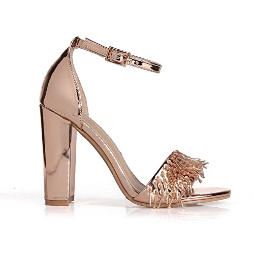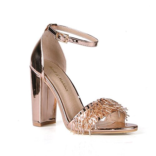 (Mark and Maddux)/Women's/Sandals/DIRECT FROM USA/Mark and Maddux Fahrenheit Hazel07 Fringe Women's High Heel Sandals in Rosegold