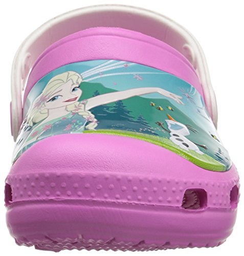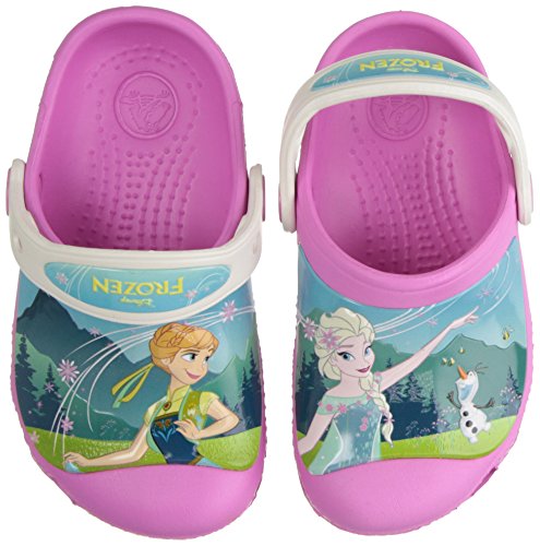 Starring Anna, Elsa and Olaf from Disney's frozen fever Croslite foam construction for comfort and cushion heel strap has room for their Jibbitz charms.