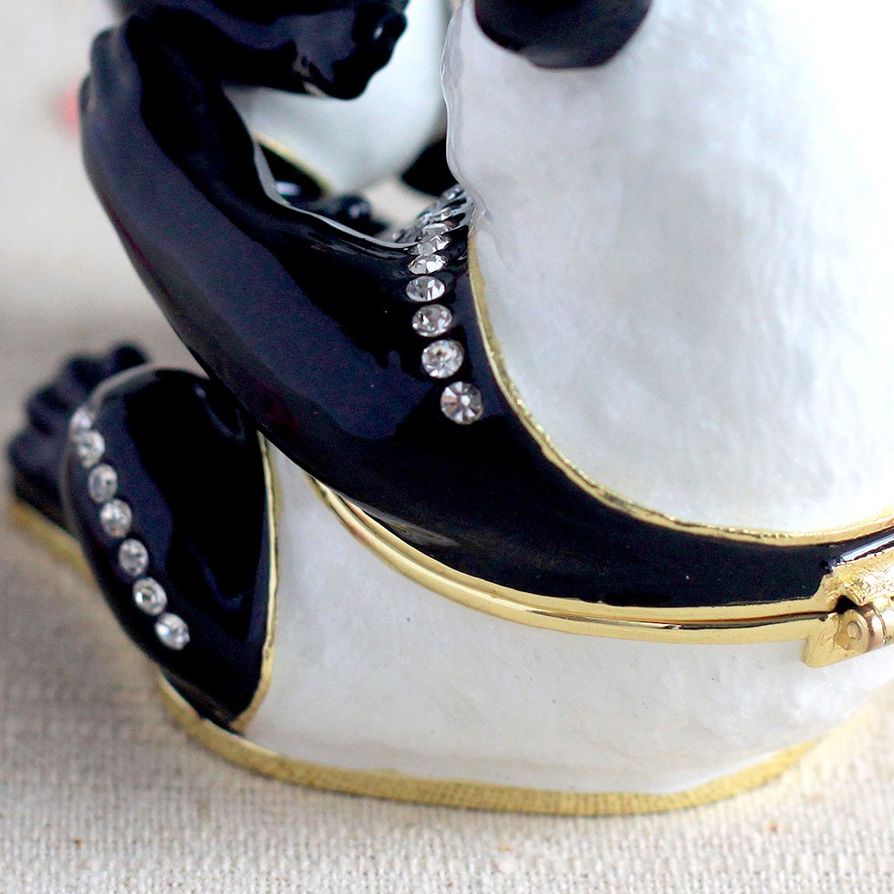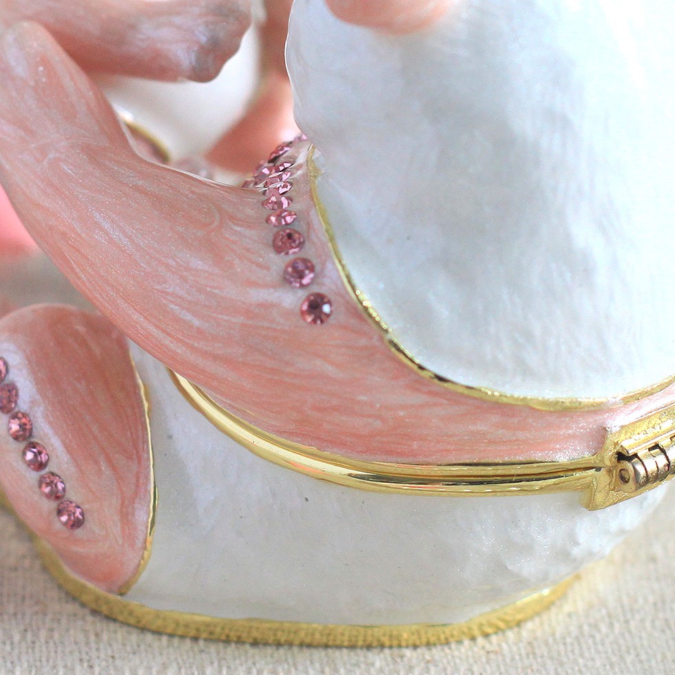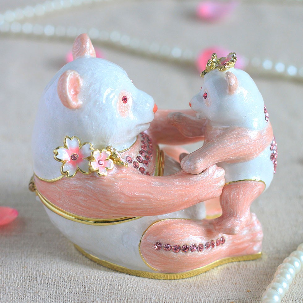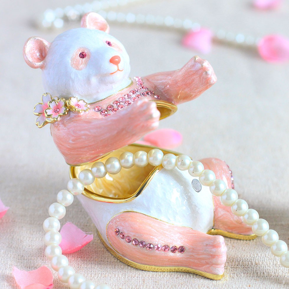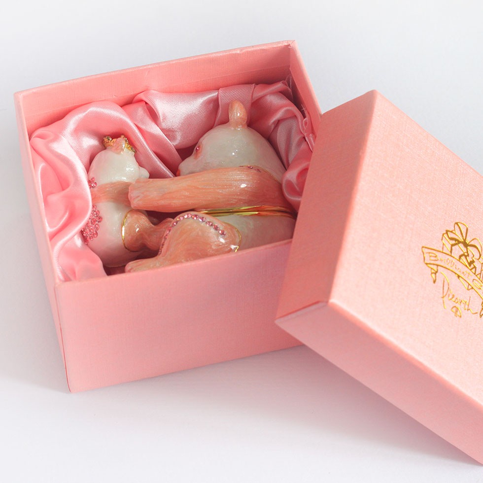 | ジュエリーボックスと言えば、指輪やピアス、ネックレスなどのアクセサリーを入れる引き出し型のケースを思い浮かべる方が多いかもしれません。 ピィアースのジュエリーボックスは、動物や花などをモチーフに作られ、合金製でずっしりとした重さがあります。また高品質のクリスタルガラスを贅沢に使用。まるでジュエリーボックスそのものが宝石のような、高級感溢れる仕上がりです。 小物入れとしても使えるように開閉口には磁石が取り付けてあり、アクセサリーなどなくしやすいアイテムの収納ができます。キラキラと美しく輝く宝石箱は、そのまま飾って楽しめるインテリア雑貨として多くの方に愛されています。 国内トップクラスのジュエリーボックスメーカーであるピィアースは、2004年ごろから本格的に宝石箱の製造を始め、現在のジュエリーボックスはなんと300種類以上。大規模展示会でもご好評いただいており、全国有名百貨店でも販売されています。 自社工場でひとつひとつ丁寧に手作りし、原型作成、研磨、加工、着色、小さなクリスタルガラスの取り付けなども全て手作業で行われるこだわりのハンドメイド品。完成後は厳しい検品の後、丁寧に梱包作業をしお客様にお届けしております。 ピィアース商品は、全国有名百貨店および全国有名宝石店チェーンにてお取り扱いいただいている高品質商品です。 ★自分へのご褒美に…コレクションして並べて飾ると、さらにかわいらしさUP! ★恋人へのプレゼント…中にアクセサリーを入れて、サプライズな贈り物として ★家族への感謝ギフト…お母さんや姉妹へ、日頃のありがとうの気持ちを込めて ★誕生日プレゼント…お友達の喜ぶ顔が見たいから、いつもと違うキラキラギフトを ★小さな女の子へ…まるでお姫様が使っているようなキラキラ宝石箱は女の子の憧れ! |