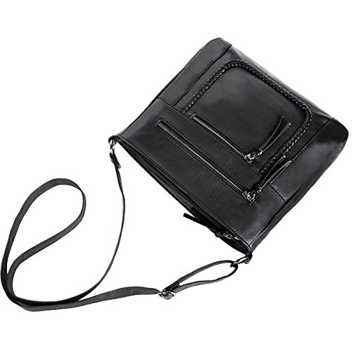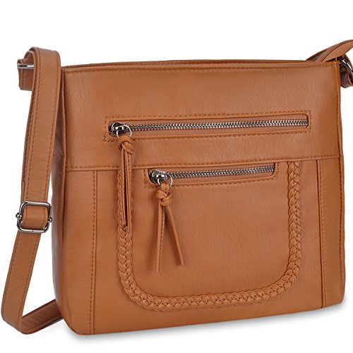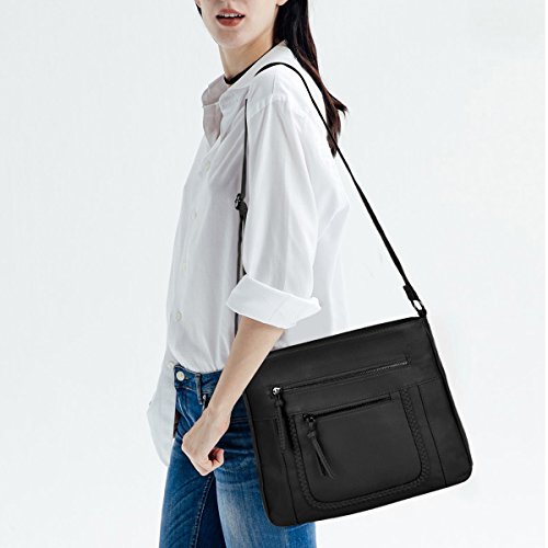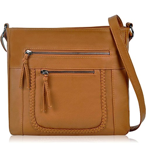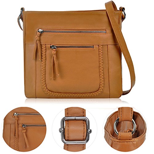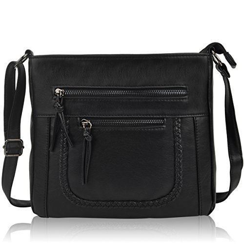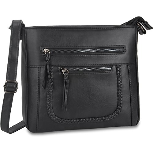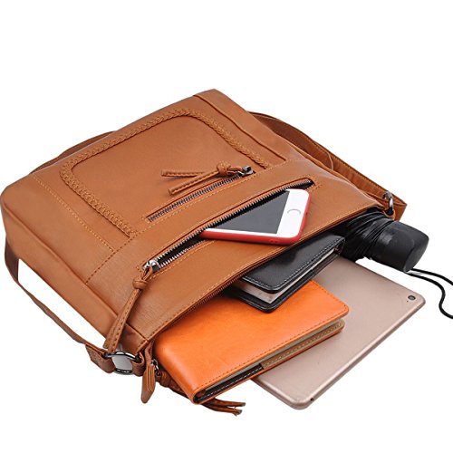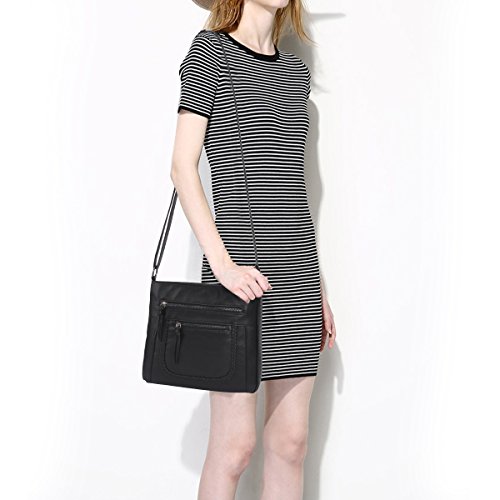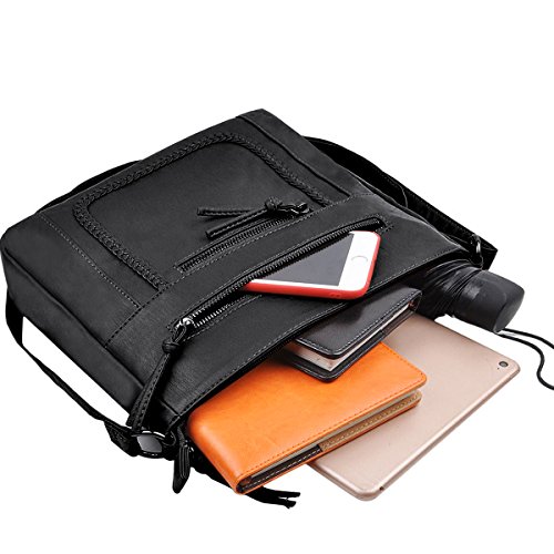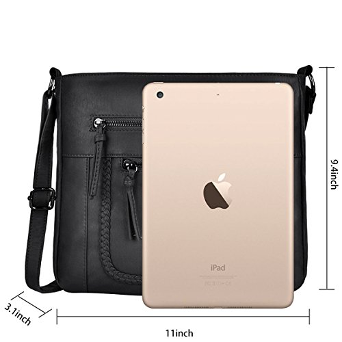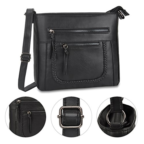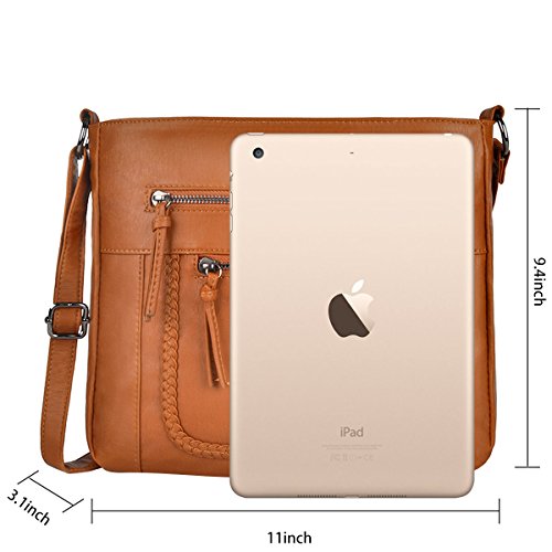 Product Description Crossbody Bag with Multi Zipper Pockets,Washed PU Crossbody Bags for Women Materials:High Quality soft washed PU Leather and Polyester Lining. Dimensions:9.8L x 8.6H x 2.75W inches. Carry method:crossbody bags/Shoulder Bag Color:Black,brown,green Pockets:One main zipper pocket fit for umbrella/water bottle/iPad/notebook,two front and one back wall zipper pockets for cell phone/keys/lipstick/coins small things. 0