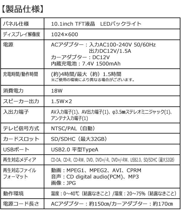 | 10.1インチ液晶モニターのポータブルDVDプレーヤーです。 |