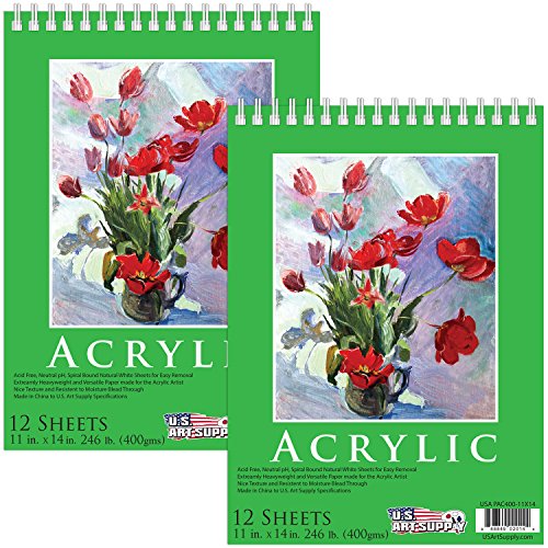 U.S. Art Supply 11 x 14 Premium Extra Heavy-Weight Acrylic Painting Paper Pad, 246 Pound (400gsm), Spiral Bound, Pad of 12-Sheets