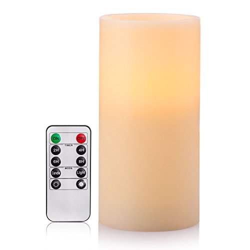 SMART 10-KEY REMOTE CONTROL TIMRE: With one remote control, you could control all our candles. Once the timer is set, the candle comes on at the same time each day and stays on for either 2 hours/4 hours/6 hours/8 hours.