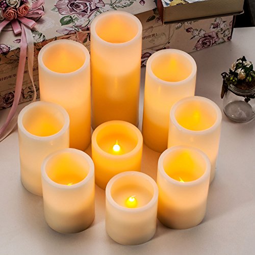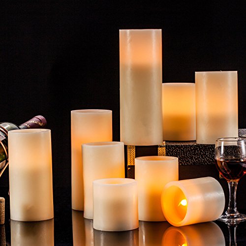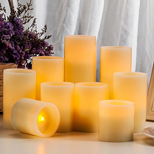 Enpornk Flameless Candles LED Pillar Battery Operated Candles with Remote Timer Set of 9