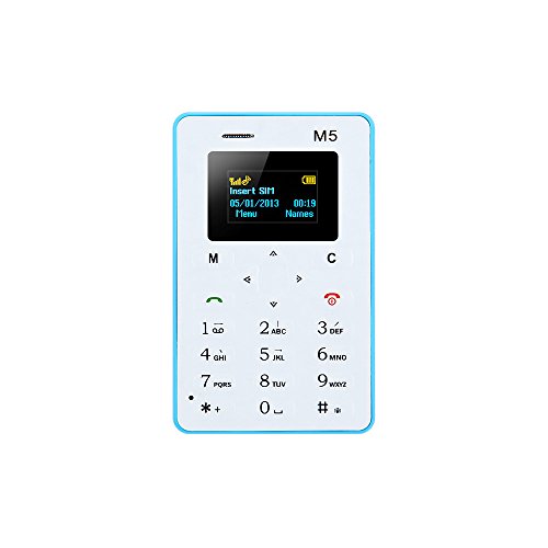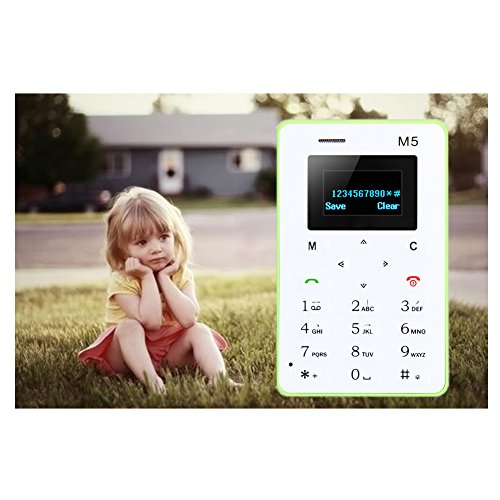 -. Feature : Handy and Portable: 4.8mm 1inch Credit Card Size Ultra-thin body with 1.0 inch OLED Screen display, low radiation / Stable Connection: Support single micro sim card and 2G network GSM 850/900/1800/1900MHz,works well even in enclosed areas / A basic phone: Support Call, Phonebook, Messaging, Calendar, Alarm, Calculator Bluetooth etc, enough for daily use. / An ideal back-up phone: 320mAh battery with 72-96 hours standby time, super power-saving, reliable in emergency situations / Great for kids or grown-up who just want a phone but not a smart phone; Multicolor available: black,white,blue,green,pink