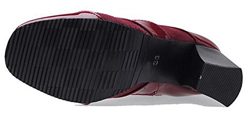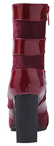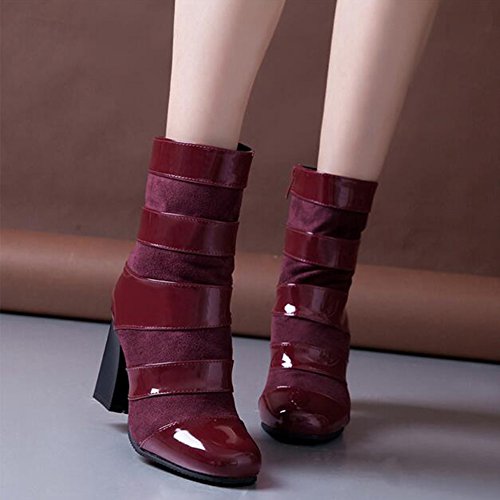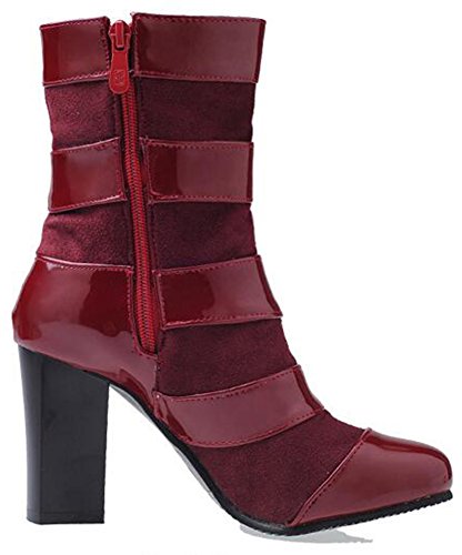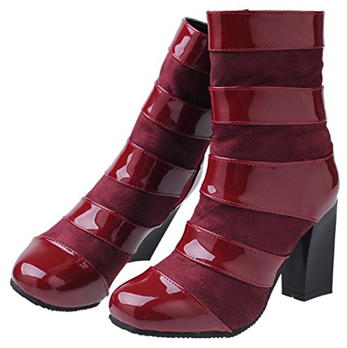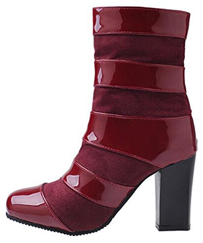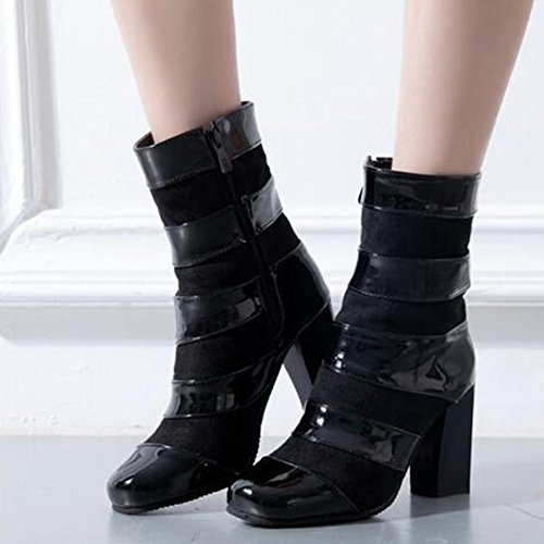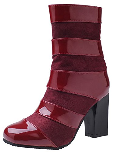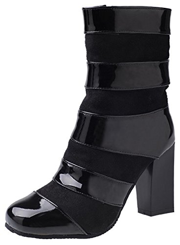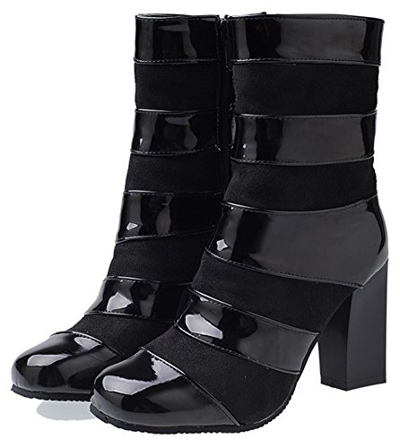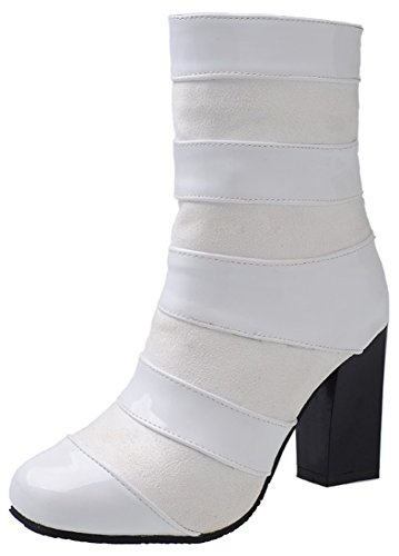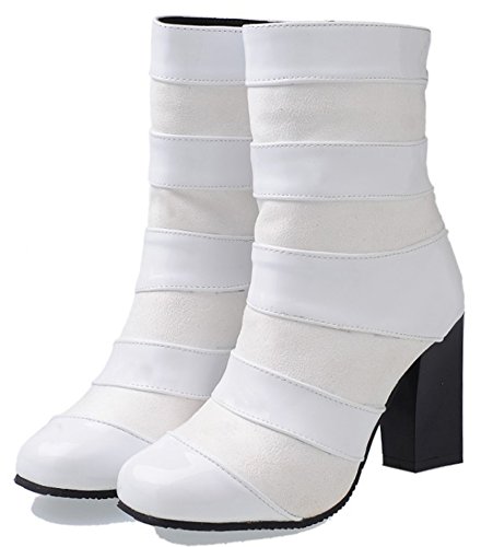 (Mofri)/Women's/Boots/DIRECT FROM USA/Mofri Women's Stylish Color Block Splicing Round Toe Square Toe High Chunky Heel Side Zipper Sh...