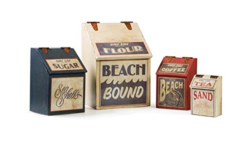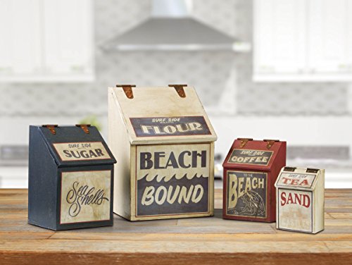 SMALL SURFSIDE CANISTERS - Flour, Sugar, Coffee and Tea Set of 4 - Canister Sets for Kitchen - Wooden Canister with Metal Hinges by TIMELESS BY DESIGN