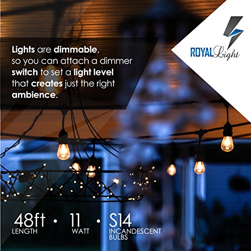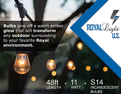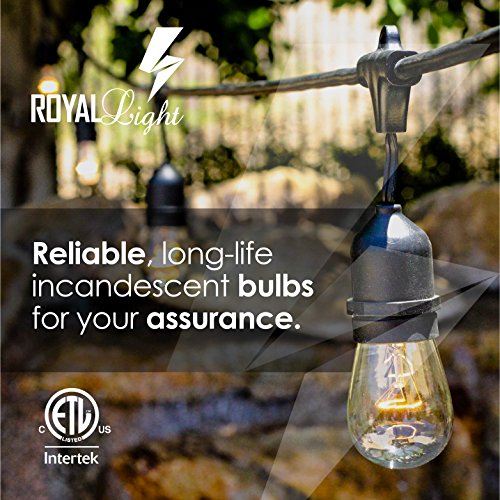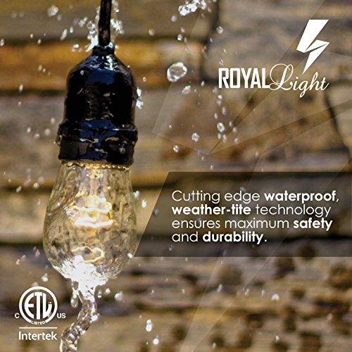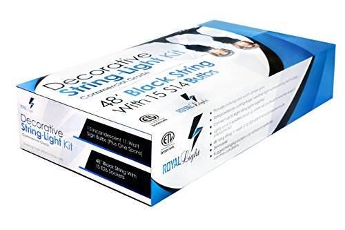 Royal Light Outdoor String Lights (48ft) The Perfect Solution for Patio, Yard, Deck lights or other Outdoor Light, Commercial Grade,15 Long-Life outdoor-string-light Bulbs, plus 2BONUSES-(Black)