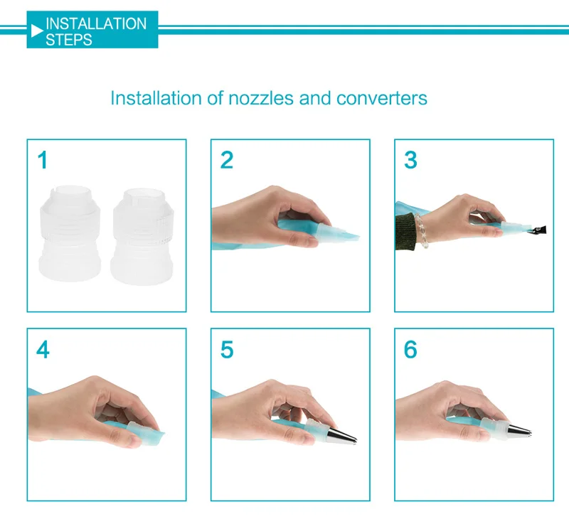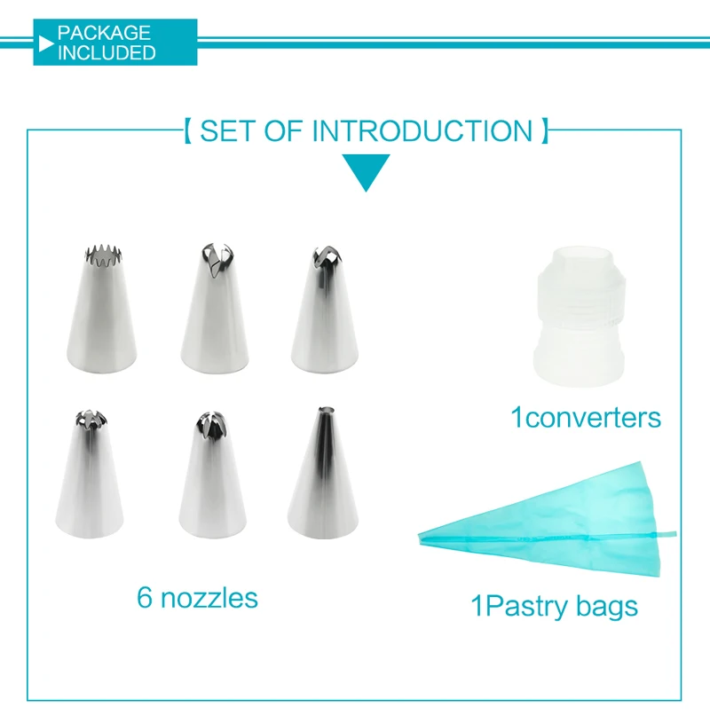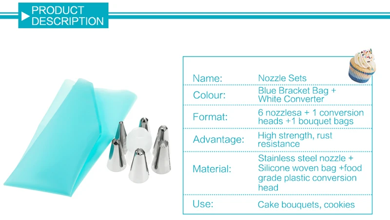 1pc Silicone Icing Piping Cream Pastry Bag with 6pcs Stainless Steel Nozzle Sets Cake DIY Decorating Baking Tool