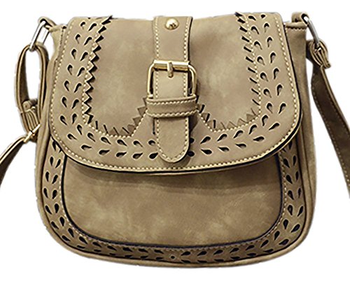 QZUnique Women's PU Hollow Shoulder Bag Hobo Crossbody Bag Front Belt Saddle Bag