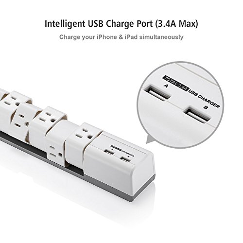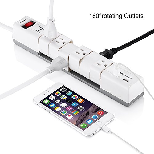 [UL listed] Poweradd 6-Outlet Swivel Power Strip Surge Protector with Dual 3.4A Smart USB Ports, 6-Foot 15A Heavy Duty Cord 1080J Surge Suppressor