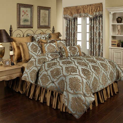 Austin Horn Classics 4-Piece Miraloma Bedding Collection, Queen, Teal/Bronze