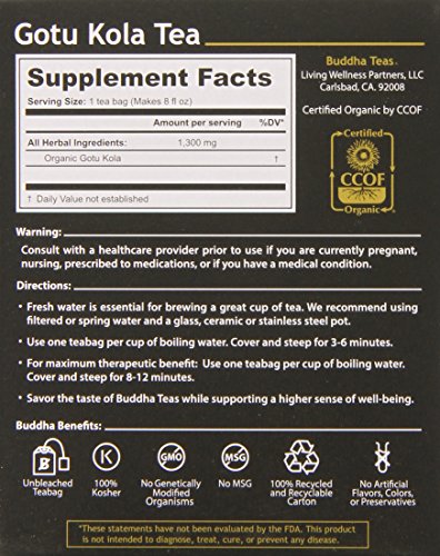-. Title : Buddha Teas Gotu Kola Tea, 18 Count (Pack of 6)
