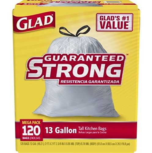 Glad 13 Gallon Tall Kitchen Drawstring Trash Bags, 120 Count