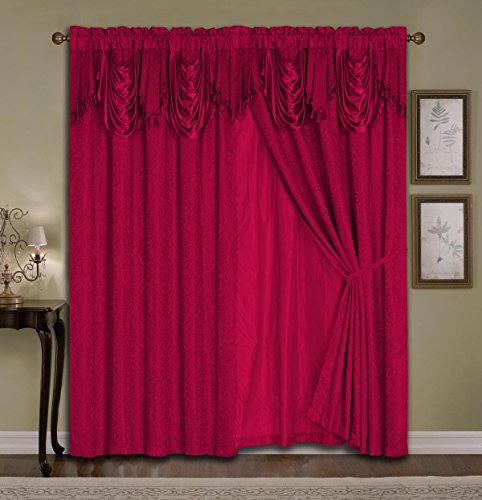 Luxury embroidered Curtain Set. 4 piece set. curtains with tie backs and valance