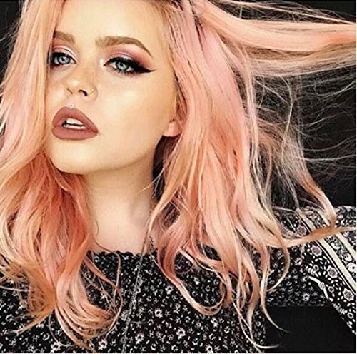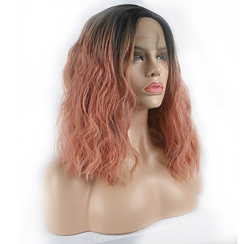 Formal Hair Short Bob Wavy Lace Front Wigs for Women Ombre Dark Roots to Mixed Pink Glueless Synthetic Wig with Baby Hair Heat Resistant 12inch