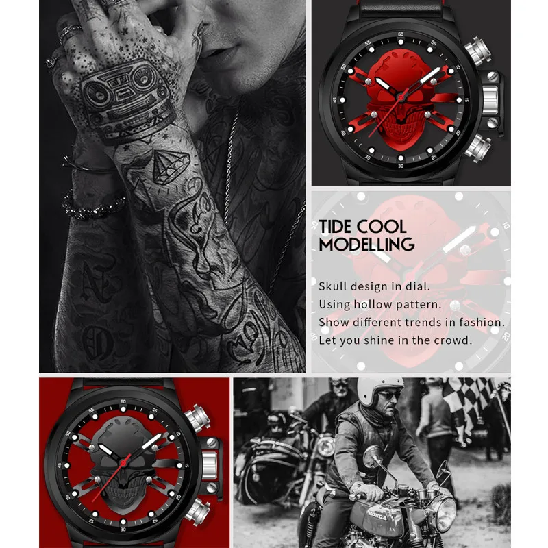 Hollow skull watch:erkek kol saati