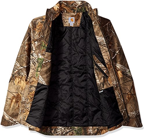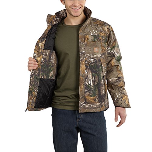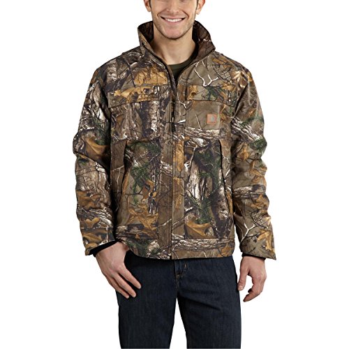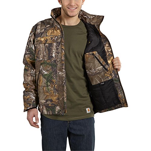 Studio : Carhartt Sportswear - Mens Publisher : Carhartt Sportswear - Mens Binding : Apparel Product Description Work lighter and work smarter in quick duck. It's 30 percent lighter than sandstone but just as tough. That means you'll be less fatigued at the end of the workday. It's made from 8.5-ounce, 60 percent cotton/40 percent polyester canvas, it offers a rain defender durable water-repellent finish and real tree Xtra pattern and is nylon lining quilted to mid-weight-polyester for warmth, has multiple pockets, an inner-sleeve, rib-knit storm cuffs that keep the wet out, drop tail for extra coverage, split-back construction and pleated bi-swing back for ease of movement and triple-stitched main seams. 0