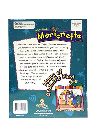Original Toy wooden marionettes are carefully designed and crafted by hand with careful attention to detail. These marionettes always take "center stage"! They can make a magical decoration in any child's room, yet they are sturdy enough for real child's play. For hours of enjoyment and dramatic play. This finely crafted Pinocchio marionette stands 14" tall excluding the strings. Size: 14" tallFeature