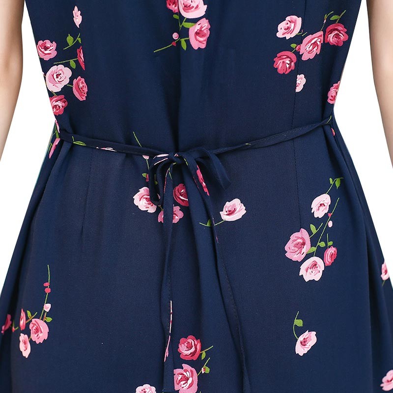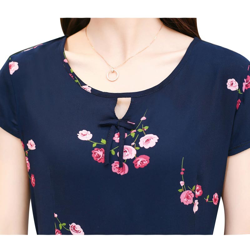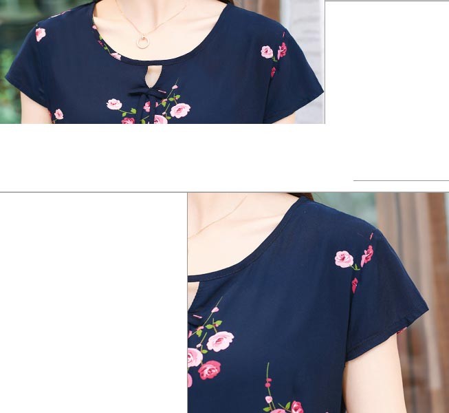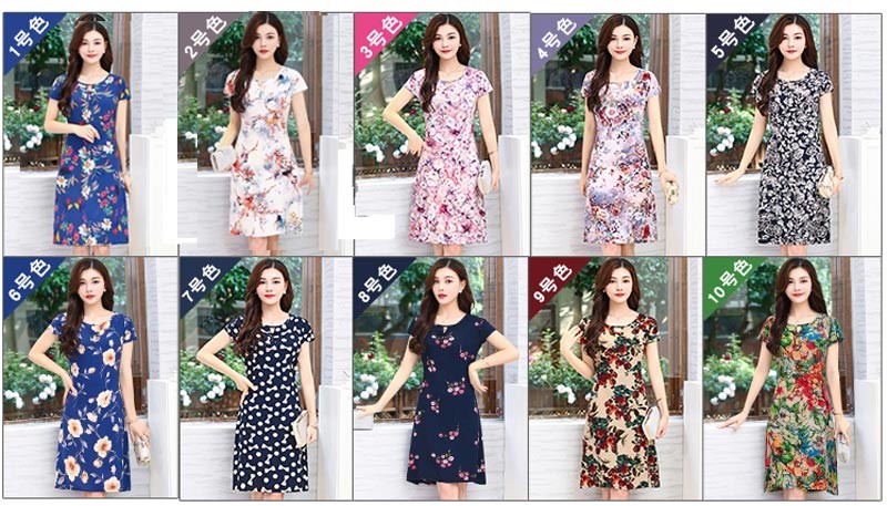 華やかなフラワープリント10種の半袖・ひざ丈・ラウンドネックワンピース♪