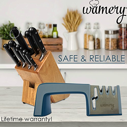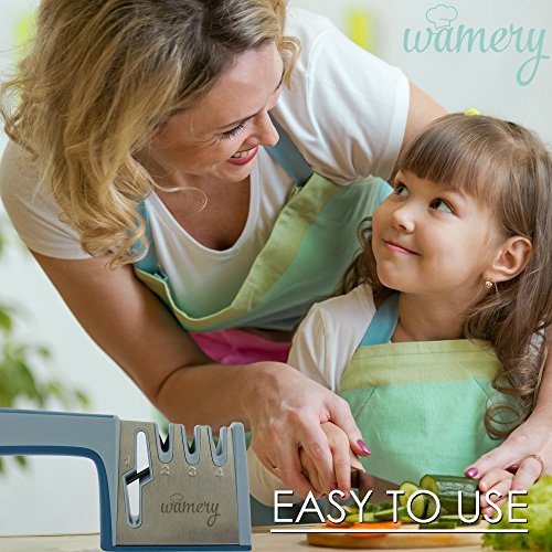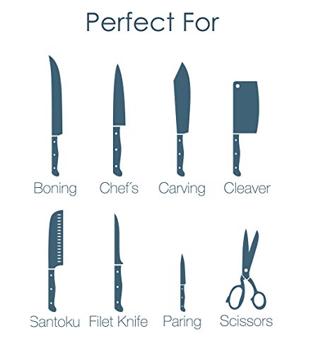 🤙 EASY TO USE: No need to be an expert to use it, just stroke towards you 3 or 4 times and your knives & scissors are ready to be used again. No more grinding and damaging your knives with handheld stones.