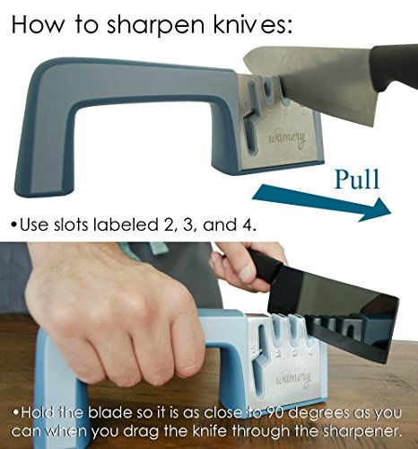 ✂️ RELIABLE: designed to keep all kitchen knives and scissors sharp as new. Save money, don't throw away blunt knives, use this tool to transform them from coarse to fine sharpened. No matter if you are right or left handed, you can use it from either side.