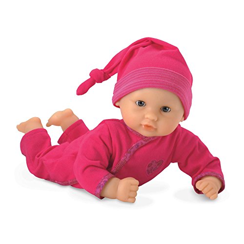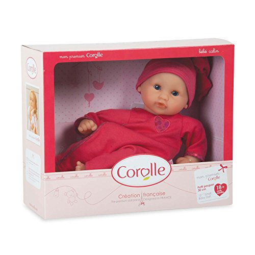 Designed for the littlest mommies aged 18 months and older, the Corolle Mon Premier Calin Mon BB Calin Grenadine 12 in. Doll is simply adorable. This doll is a sweet-faced baby with big blue eyes that close when she's put down for a nap and kissably soft vinyl skin. She comes dressed for bed in pink ruffled pajamas with matching cap. Her snuggly soft bean bag body is posable and perfect for cuddling. Her smooth vinyl skin is gently scented with vanilla.Feature