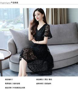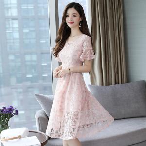 オーガンジーワンピース 花柄刺繍 フラワーモチーフ 膝丈 ドレス フレア袖 半袖 Vネック フレアスカート ハイウエスト
