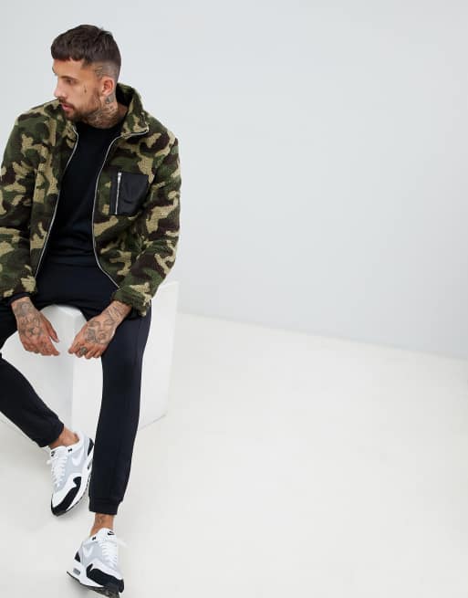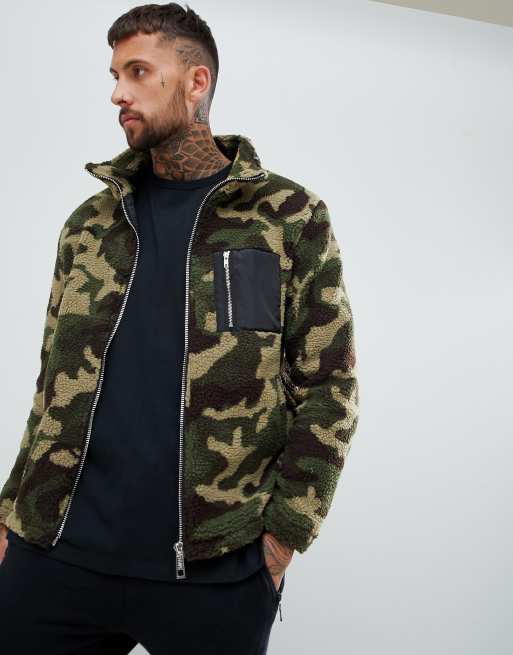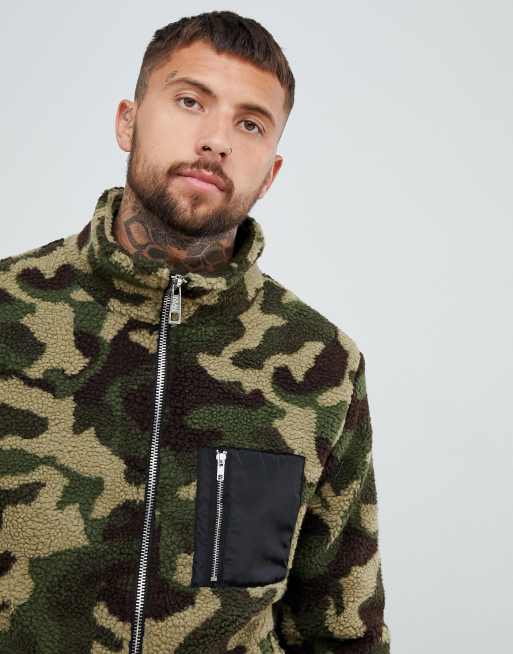 boohooMAN borg jacket in camo print