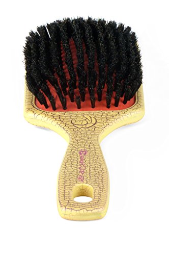Dianyi 100% Boar Bristle Hair Brush with Cushion Base Durable And Lasting Luxury Patent Leather Handle (Yellow)