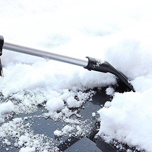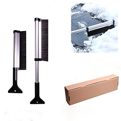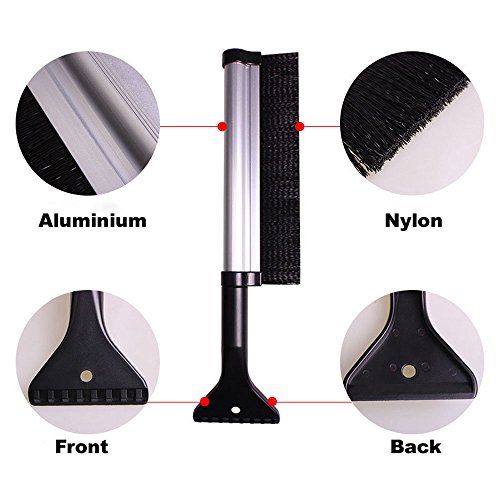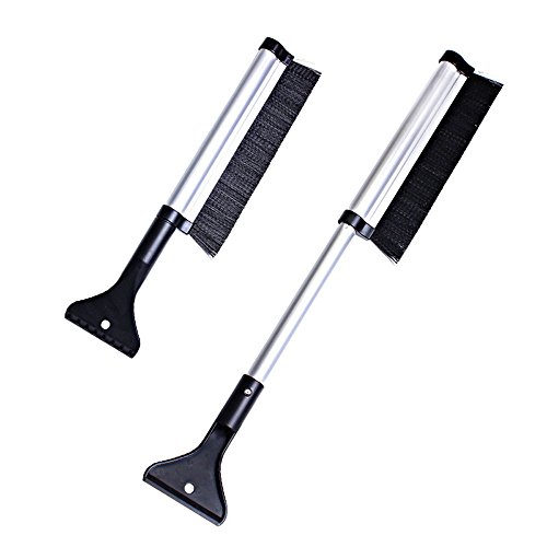 Extendable Telescoping Snow Brush - Ice Scraper for Car, Retracts From 24" to 17" Reaches Entire Windshield,Stiff Bristle Brush, Lightweight Sturdy