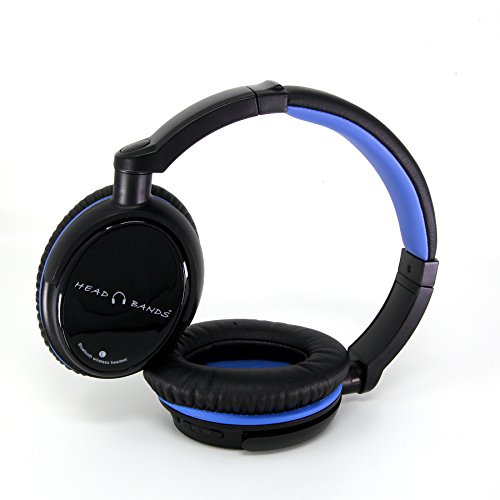 Head Bands Wireless Bluetooth 4.0 Headphones HB-BT30 (Blue) up to 20 hours of use per charge, Built-In Microphone, Lightweight, Fantastic Sound Quality, includes Travel Case
