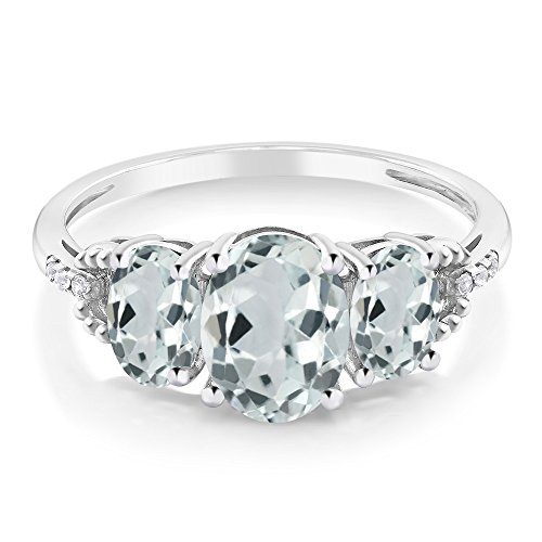 -. Title : 10K White Gold Diamond Accent Three-Stone Engagement Ring set with 2.01 Ct Oval Sky Blue Aquamarine (Available in size 5, 6, 7, 8, 9)