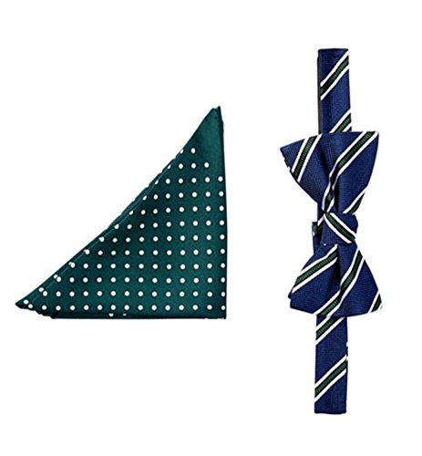 -. Title : Tommy Hifiger Men's Stripe Dot Silk Bow Tie and Pocket Square Set Hunter
