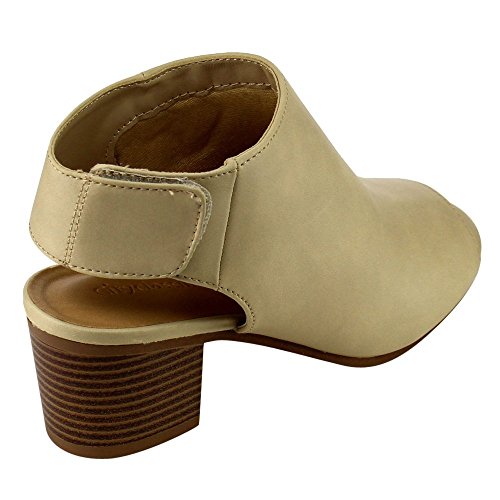 -. Title : CityClassified IB69 Women's Stacked Block Heel Cutout Ankle Strap Bootie